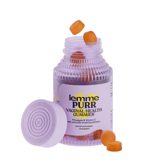 Lemme Purr Vaginal Probiotic Gummies are designed to support vaginal health with Vitamin C, pineapple fruit powder, and Bacillus coagulans SNZ 1969™. Each pineapple-flavored gummy delivers 1 Billion CFUs of this clinically-tested probiotic strain, known to promote vaginal health, freshness, and odor control. The formulation supports a healthy vaginal pH and balanced microflora, offering the benefits of probiotics in a convenient, delicious form.